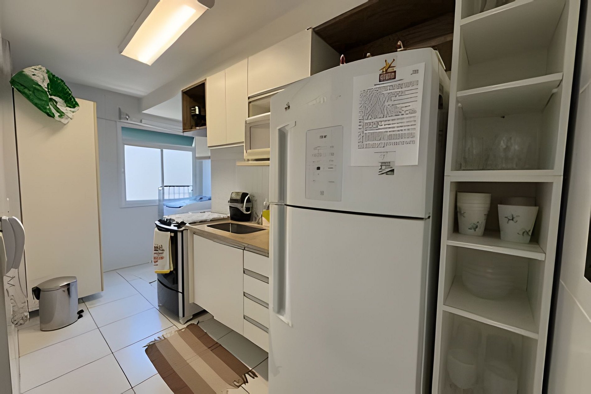 O apartamento é muito bom, localizado no oitavo andar, bem ventilado e espaçoso. Possui uma varanda com vista para o mar, quarto com uma cama de casal e um beliche, cozinha completa, máquina de lavar, tv no quarto e na sala. Além disso tem todos utensílios necessários que você precisará na sua estadia.